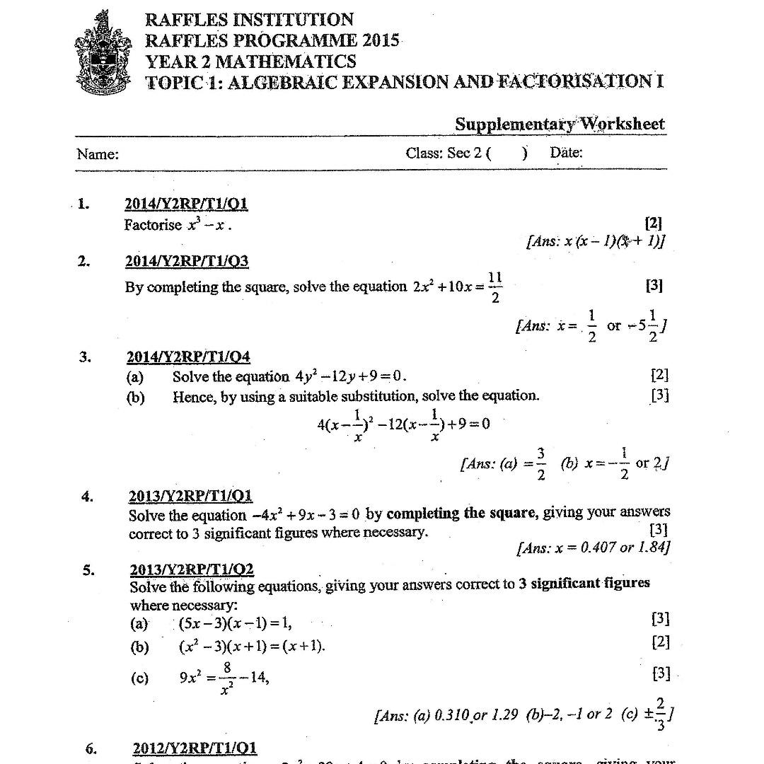 RGS Sec 2 Math Worksheets, Books & Stationery, Textbooks ...